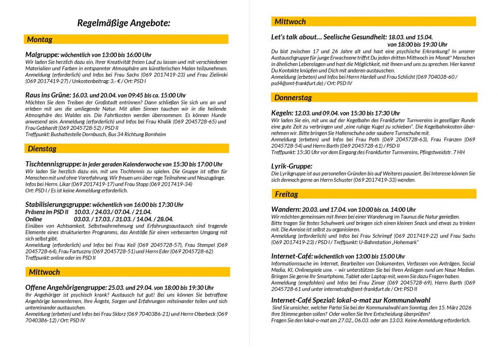 Wir bieten Freizeitangebote insbesondere für Menschen mit einer psychischen Erkrankung und in seelischen Krisen. Wer zu unseren Angeboten kommt, kann in ungezwungener Atmosphäre andere Menschen kennenlernen und mit ihnen Zeit verbringen.