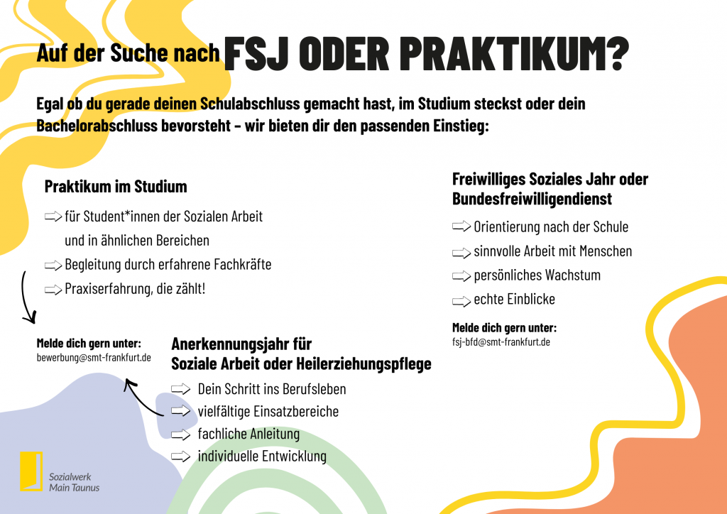 Bewirb dich jetzt für ein FSJ oder den Bundesfreiwilligendienst: fsj-bfd@smt-frankfurt.de